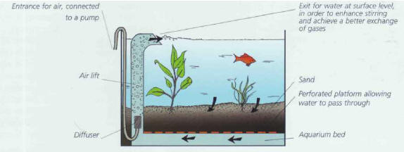 The air-lift makes it possible to use an under-gravel filter or a drip filter,